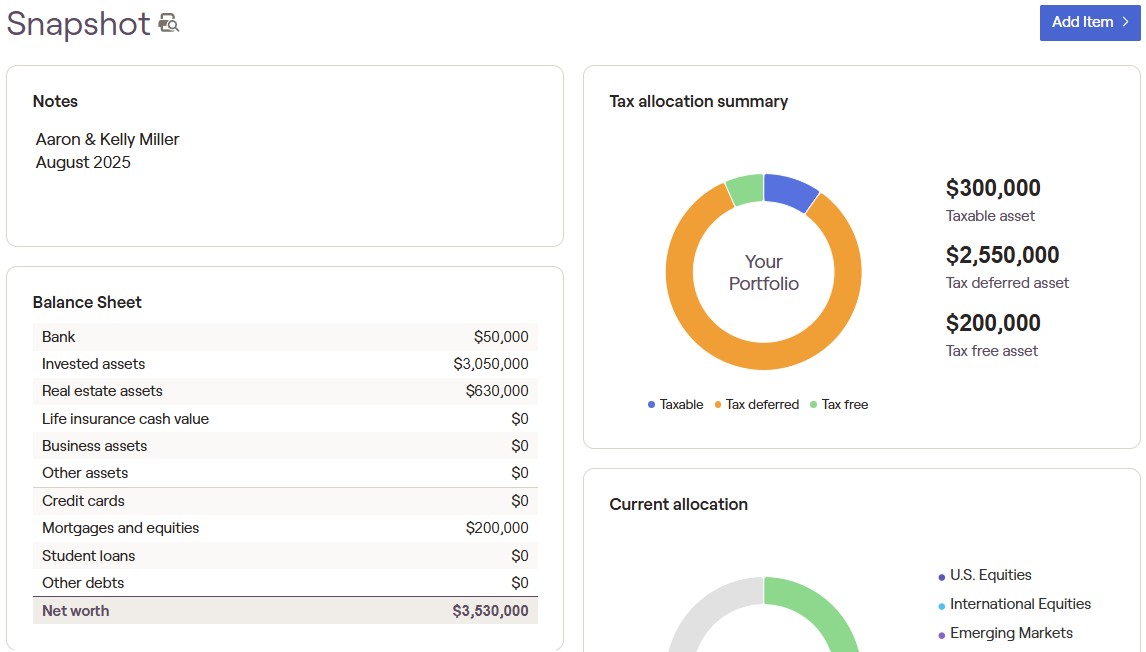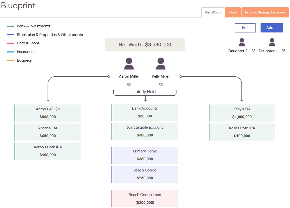 First we're going to take a look at the Millers' blueprint, which says they have a a net worth of over $3.5 million. So, they've done a great job building up a nest egg.