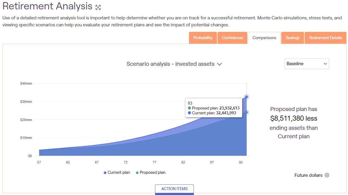 The proposed plan is still going to have about $24 million at the end. So, pretty dang good, right? And again, this is 30 plus years down the road. That's why these numbers get so high. These are inflation and investment return adjusted.